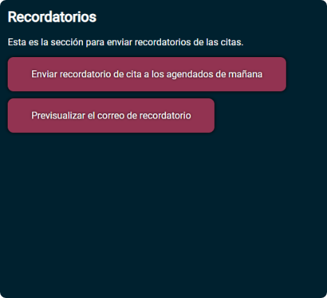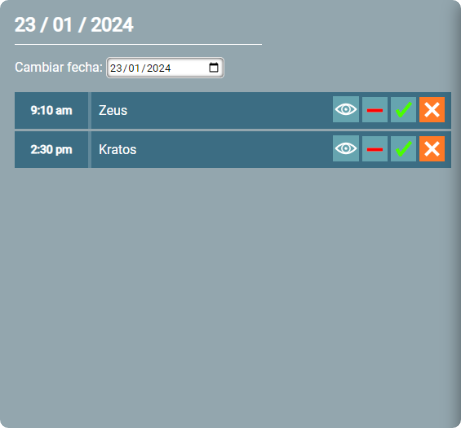 Visualiza diariamente las citas agendadas, teniendo la opción de cancelarlas o marcarlas como ya completadas.