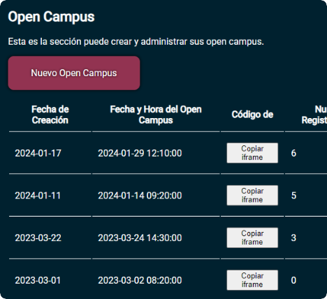 Configura la información del Open Campus y realiza un seguimiento efectivo de la base de datos de cada aspirante que asistirá.